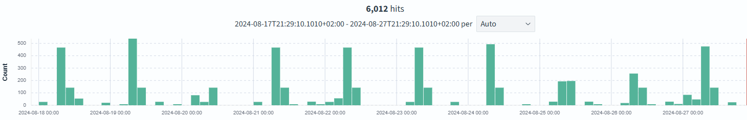 When zooming in the picture (see below), it seems that most attacks are registered between 8 and 10 AM (EEST).